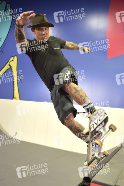 Christian Hosoi beim Start der Pop-up-Skatepark-Initiative 'Bones Love Milk' des California Milk Processor Board. Huntington Beach, 24.07.2019