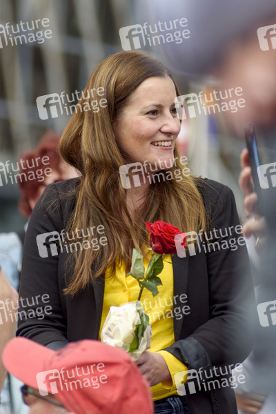 Janine Wissler spricht bei einer Wahlkampf-Veranstaltung der Partei Die Linke auf dem Kornmarkt, Nürnberg, 18.09.2021