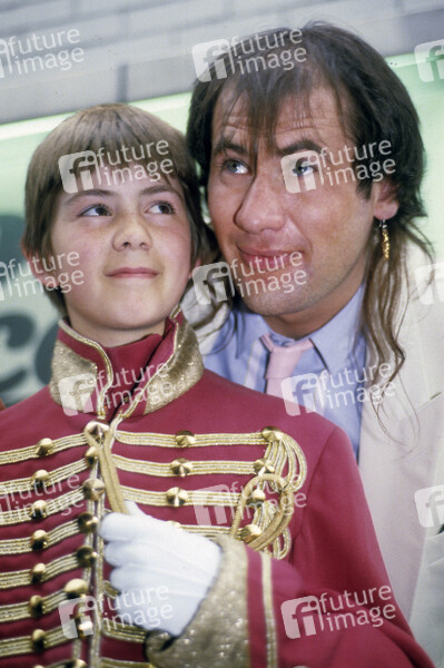 Fish mit LP-Cover-Model Robert Mead beim Photocall zum Release des Marillion Albums 'Misplaced Childhood' im Ronnie Scotts. London, 15.06.1985
