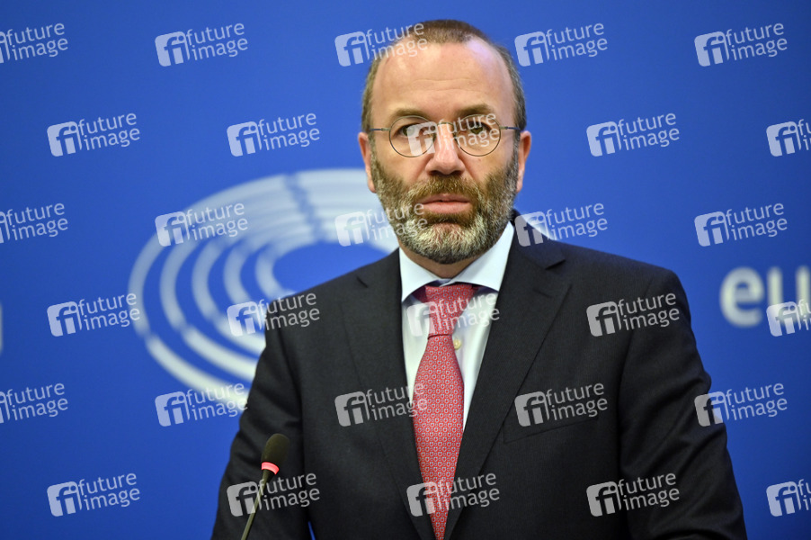 Manfred Weber beim Pressebriefing Fraktion der Europäischen Volkspartei im Europäischen Parlament. Straßburg, 05.04.2022