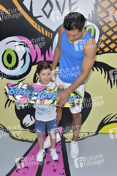 Mario Lopez mit Sohn Dominic beim Start der Pop-up-Skatepark-Initiative 'Bones Love Milk' des California Milk Processor Board. Huntington Beach, 24.07.2019