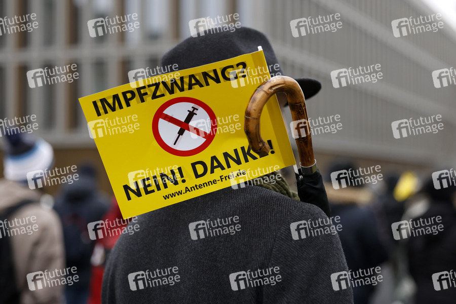 Bei einer angemeldeten Demo demonstrierten etwa 8000 Gegner einer Impfpflicht mit einem Spaziergang gegen die Corona-Maßnahmen der Bundesregierung - darunter auch viele Pflegekräfte, die wegen der Impfpflicht im Gesundheitsbereich ihren Job zu verlieren drohen. Düsseldorf, 15.01.2022