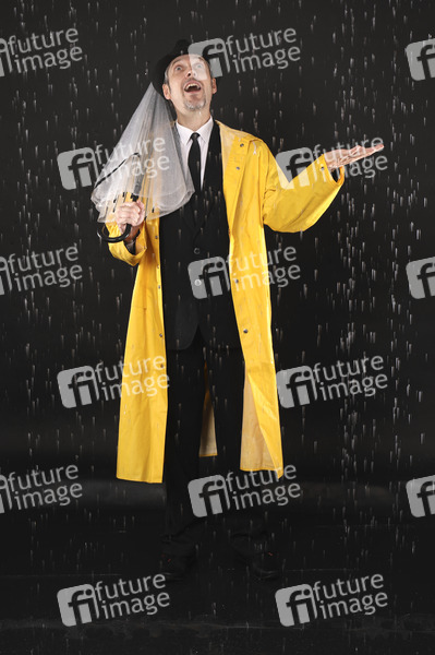 Fotoshooting, Unterhaltung, Entertainment, Kultur, Singin' in the Rain, Singing in the Rain, Musical, Regen, Wetter, Regenschauer, Nieselregen, Platzregen, Niederschlag, Gewitter, Wasser, Wetterprognose, Wettervorhersage, Regenschirn, Schirm, Regenjacke, Südwester, Regenkleidung, Regenwetter, Symbolbild, Symbolfoto