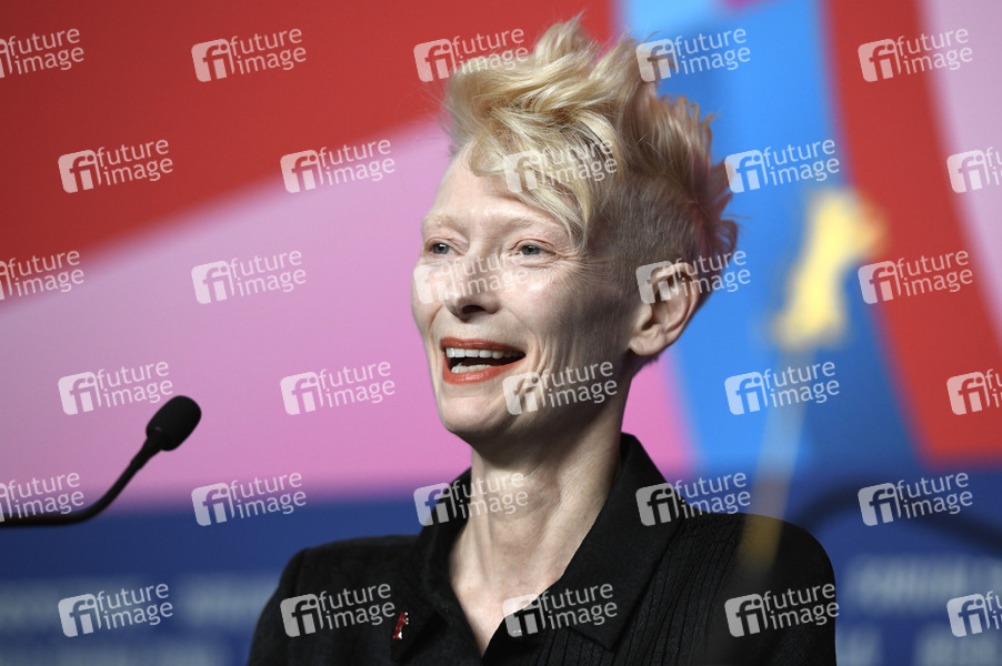 Tilda Swinton bei der Pressekonferenz zur Verleihung des Goldenen Ehrenbären auf der Berlinale 2025 / 75. Internationale Filmfestspiele Berlin im Hotel Grand Hyatt. Berlin, 14.02.2025