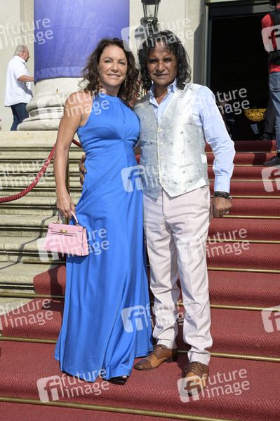 Christine Neubauer mit Partner Jose Campos beim Event Oper für alle 2024 im Rahmen der Münchner Opernfestspiele im Nationaltheater mit der Live-Opernübertragung von Giacomo Puccinis Tosca auf dem Max-Joseph-Platz. München, 27.07.2024