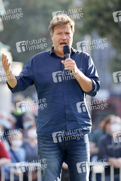 Robert Habeck redet bei einem Wahlkampf-Auftritt für die Kölner Grünen auf dem Heumarkt. Köln, 22.09.2021