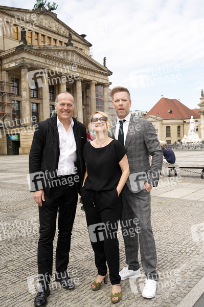 Joja Wendt, Katharine Mehrling und Tom Gaebel beim Fototermin nach der Pressekonferenz zum Classic Open Air 2022 auf dem Gendarmenmarkt. Berlin, 16.06.2022