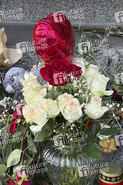 Blumen, Kerzen und Fotos sind an einem Gedenkort für die verstorbene Rosenstolz-Sängerin AnNa R. am Theater des Westens zu sehen. Die Sängerin wurde 55 Jahre alt. Berlin, 22.03.2025