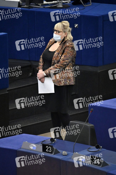 Aurelia Beigneux bei einer Plenartagung über den Schutz von Tieren beim Transport im Plenarsaal des Europäischen Parlaments. Straßburg, 20.01.2022