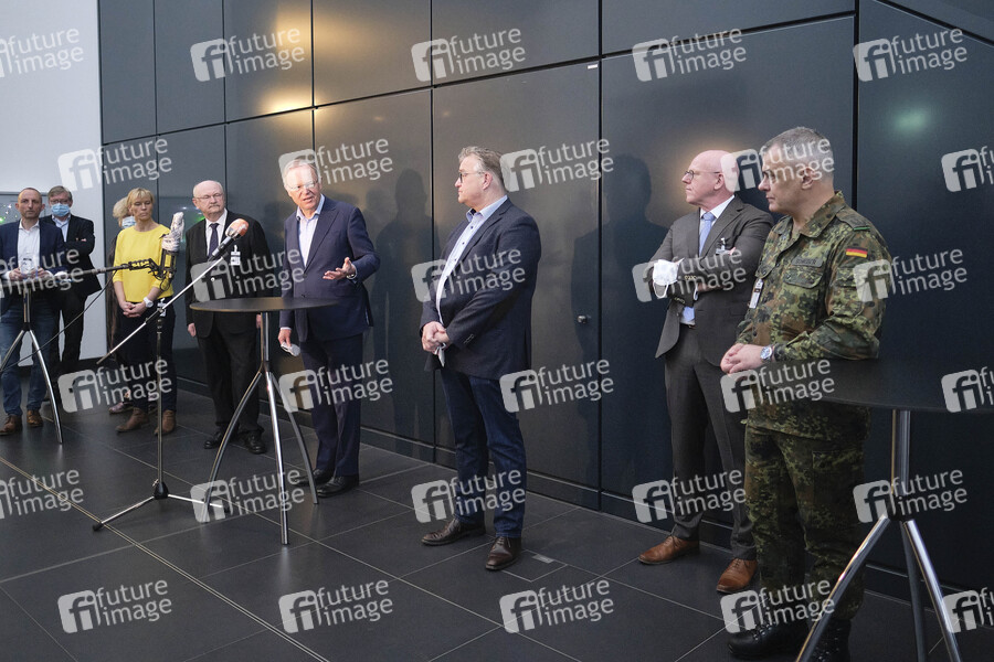 Ministerpräsident Stephan Weil bei der Besichtigung eines Corona-Notfallkrankenhauses auf dem Messegelande. Hannover, 04.04.2020