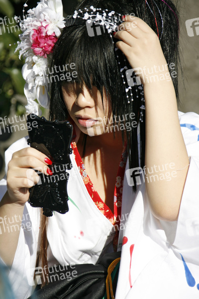 Cosplay ist die japanische Abkürzung des englischen Begriffs costume play und bezeichnet einen japanischen Trend der im Laufe der 1990er-Jahre mit dem Manga- und Anime-Boom aus Japan in die USA und nach Europa kam, beim Cosplay stellt der Teilnehmer seine Lieblingsfigur durch Kostüm und Verhalten möglichst originalgetreu dar, Jugendliche in Tokio, Teenager, Cosplayer