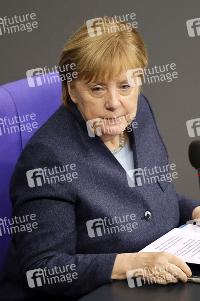 Angela Merkel in der 201. Sitzung des Deutschen Bundestages im Reichstagsgebäude. Berlin, 16.12.2020