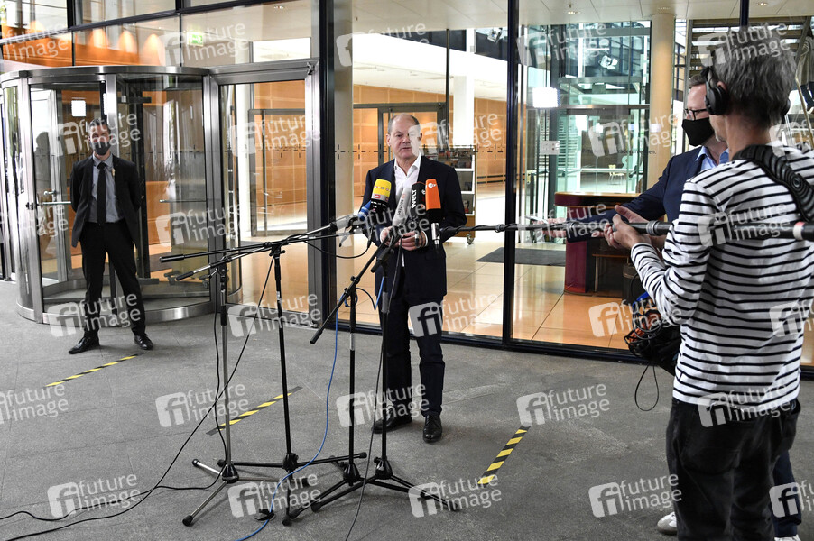 Politiker, Vizekanzler der Bundesrepublik Deutschland, Bundesminister der Finanzen, Finanzminister SPD-Kanzlerkandidat, PK, Pressekonferenz, PK, Coronademo, Coriona-Demo