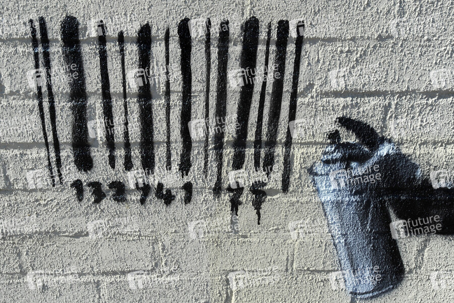 Street Artist, Art, Kultur, Künstler, Straßenkunst, Kunst, Grafitti, Roboter, Barcode