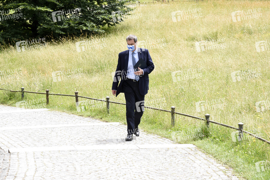 Markus Söder auf dem Weg zur Pressekonferenz zur bayerischen Teststrategie zur Bewältigung der Corona-Pandemie im Prinz-Carl-Palais. München, 30.06.2020