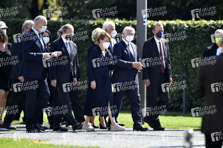 Dietmar Woidke, Michael Müller, Elke Büdenbender, Frank-Walter Steinmeier und Axel Klausmeier bei der zentralen Gedenkveranstaltung zum 60. Jahrestag des Mauerbaus auf dem Vorplatz der Kapelle der Versöhnung an der Gedenkstätte Berliner Mauer an der Bernauer Straße. Berlin, 13.08.2021