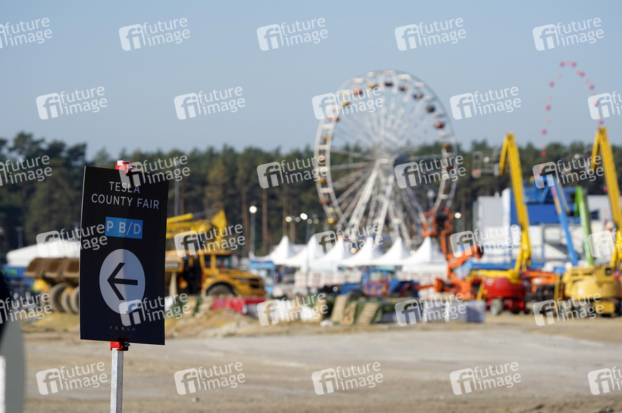 Riesenrad, Tesla Fest, Fest, Jahrmarkt, County Fair, US-Autobauer Tesla, News, Nachrichten, Tesla, Elektroauto, Elektrofahrzeuge, PKW, Auto, Model Y, Model 3, Großfabrik, Automobilhersteller, Autobauer, Elektromobilität, umweltfreundlich, vorläufige Genehmigung, Batteriefabrik, Großprojekt, Investition, Baugenehmigung, Vorab-Genehmigung, E-Auto-Fabrik, Umwelt, Klimaschutz, Baustelle, Bauen, Baubranche, Bau-Branche, Bauarbeiten, Großbaustelle, Bagger, Kran, Kräne, Baustelle, Batterie-Fabrik