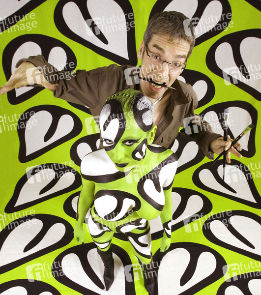Künstler, Bodypainting, Stoffdesign Anna Efverlund, Erotik, Frau, nackt, drinnen, weiblich, Muster, Chamäleon, erotic, woman, nude, indoor, female, chameleon