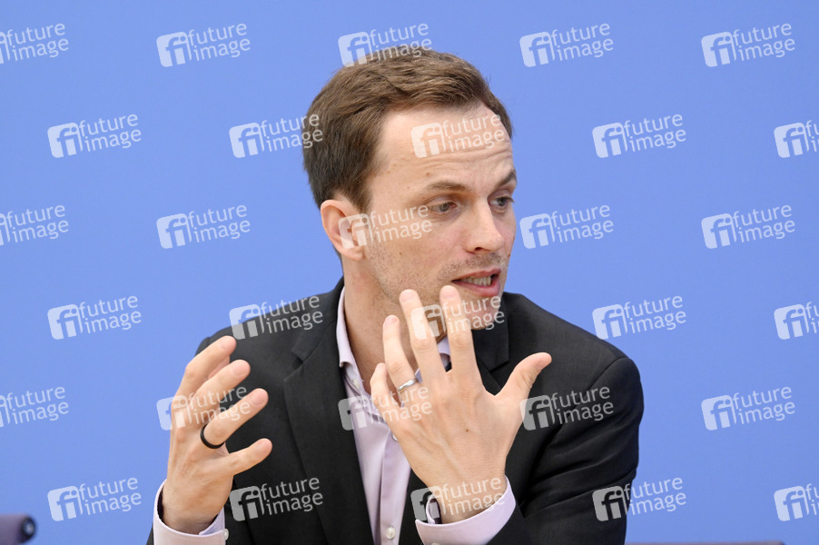 Christoph Trautvetter bei der Bundespressekonferenz 'Ergebnisse zur Bürgerdebatte gerechte Steuern und Finanzen' im Haus der Bundespressekonferenz. Berlin, 26.05.2025