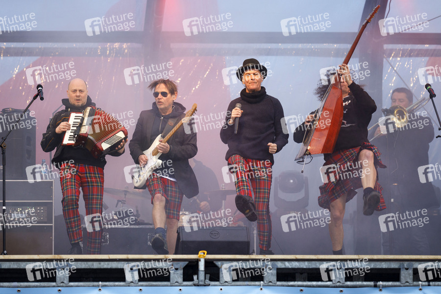 Kai Engel, Harry Alfter, Peter Brings und Stephan Brings von Brings beim Autokonzert 'Carnevalssitzung #1' von Bonnlive am Südstadion. Wegen der anhaltenden Coronakrise sind Karnevalsveranstaltungen in diesem Jahr weitgehend abgesagt, der Kölner Rosenmontagszug findet lediglich virtuell statt, Konzerte unterliegen strengen Beschränkungen. Köln, 06.02.2021