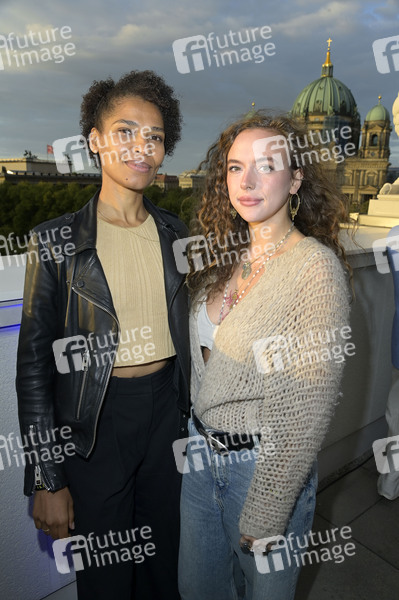 Cyntia Micas und Rachel Brings beim Eröffnungsempfang der UFA Filmnächte 2024 auf der Dachterrasse der Bertelsmann Repräsentanz. Berlin, 21.08.2024