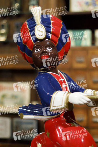 Ein Sarotti-Mohr wie er früher als Werbefigur für Sarotti Schokolade aufgestellt wurde im Kölner Schokoladenmuseum. Köln, 09.04.2019