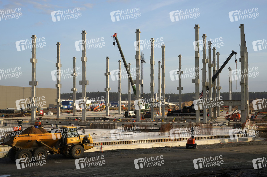 Elektroauto, Elektrofahrzeuge, PKW, Auto, Model Y, Model 3, Großfabrik, Automobilhersteller, Autobauer, Elektromobilität, umweltfreundlich, vorläufige Genehmigung, Batteriefabrik, Großprojekt, Investition, Baugenehmigung, Vorab-Genehmigung, E-Auto-Fabrik, Umwelt, Klimaschutz, Baustelle, Bauen, Baubranche, Bau-Branche, Bauarbeiten, Großbaustelle, Bagger, Kran, Kräne, Baustelle, Batterie-Fabrik