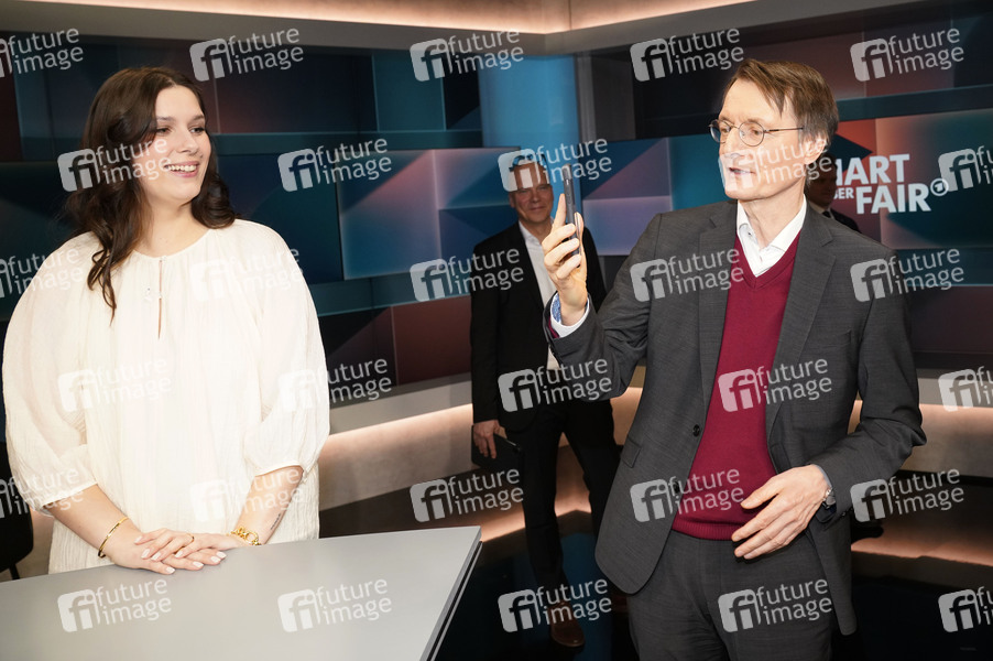 Tara-Louise Wittwer und Karl Lauterbach in der ARD-Talkshow 'hart aber fair' im Studio Adlershof. Berlin, 18.03.2024