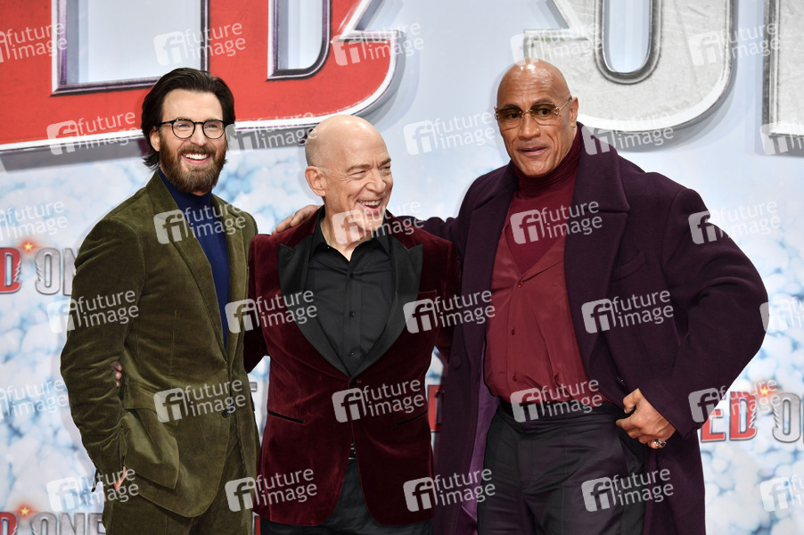 Chris Evans, J.K. Simmons und Dwayne Johnson bei der Weltpremiere des Kinofilms 'Red One - Alarmstufe Weihnachten' im UCI Luxe East Side Gallery. Berlin, 03.11.2024
