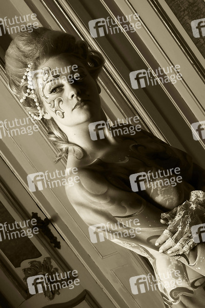 Barock Bodypainting mit Model Daniela im Schloss Hasperde. Hasperde, 25.02.2014 - Body Paint Künstler: Jörg Düsterwald, Frisur und Make-up: Janina Horstmann