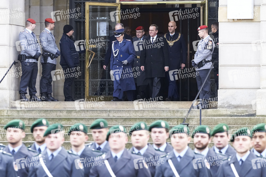 Boris Pistorius und Belit Onay beim Feierlichen Gelöbnis zum Gründungstag der Bundeswehr auf dem Platz der Menschenrechte vor dem Neuen Rathaus. Hannover, 12.11.2024
