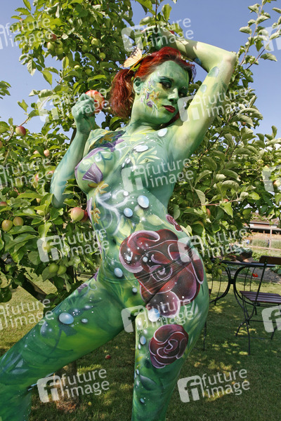 Bodypainting, Erotik, Frau, nackt, draußen, weiblich, Apfel, Apfelbaum, Baum, woman, nude, outdoor, female, erotic, apple, tree