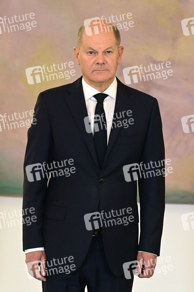 Olaf Scholz bei der Übergabe der Entlassungsurkunden gemäß Artikel 64 Abs. 1 Satz 1 des Grundgesetzes auf Vorschlag des Bundeskanzlers an den Bundesminister der Finanzen Christian Lindner, dem Bundesminister der Justiz Marco Buschmann und der Bundesministerin für Bildung und Forschung Bettina Stark-Watzinger sowie der Ernennungsurkunden für den neuen Justizminister Volker Wissing und den neuen Finanzminister Jörg Kukies im Schloss Bellevue. Berlin, 07.11.2024
