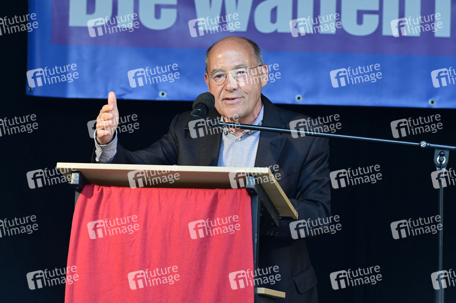 Gregor Gysi bei einer Wahlkampf-Veranstaltung der Partei Die Linke zur Europawahl am Dr.-Külz-Ring. Dresden, 06.06.2024