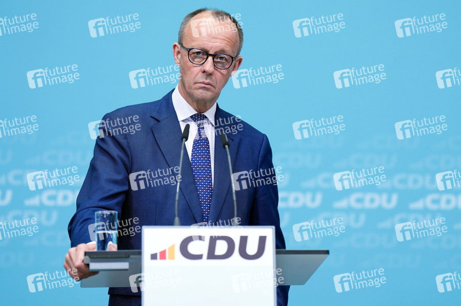 Friedrich Merz bei einer Pressekonferenz nach der Bundesvorstandssitzung der CDU mit der Bekanntgabe der Nominierung von Ursula von der Leyen als Spitzenkandidatin für die Europawahl im Konrad-Adenauer-Haus. Berlin, 19.02.2024