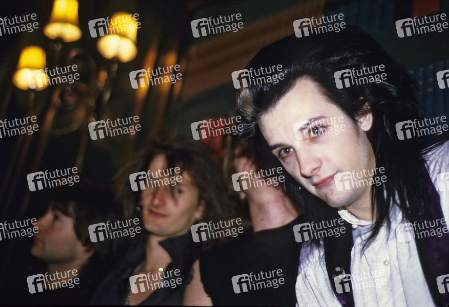Roman Jugg, Bryn Merrick, Rat Scabies und Dave Vanian von The Damned bei einem Photoshooting in einem Hotel. London, 12.07.1985