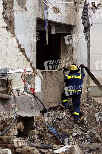 Nach dem Jahrhunderthochwasser in der Eifel durch heftige Regenfälle und Dauerregen mit Überschwemmungen und Überflutungen haben die Aufräumarbeiten im Ahrtal große Fortschritte gemacht. Einheiten von Polizei, THW, Bundeswehr und Feuerwehr mitsamt vielen freiwilligen Helfern haben Straßen geräumt, Schutt und Schlamm entfernt und die Menschen versorgt. Der Wiederaufbau wird trotzdem Jahre dauern. Im Bild Flutschäden in der Ortschaft Mayschoß, in der die Flut viele Häuser zerstörte, 08.08.2021