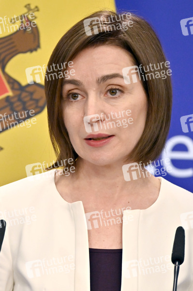 Maia Sandu bei einer Pressekonferenz zum EU-Assoziierungsabkommen mit der Republik Moldau lim Europäischen Parlament. Brüssel, 18.05.2022