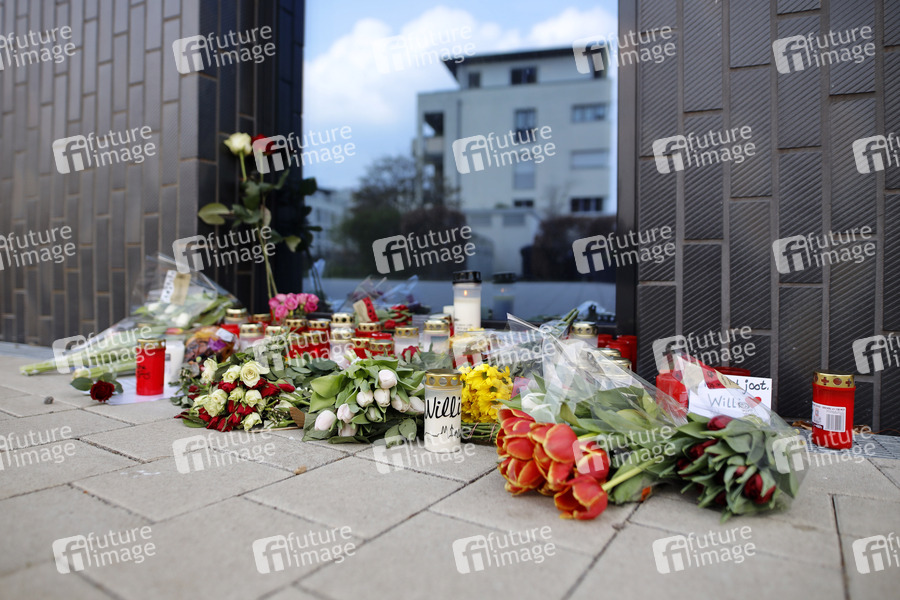 Familie, Freunde und Fans nehmen Abschied von Willi Herren und legen Blumen, Kerzen und Karten am Haus des verstorbenen Entertainers nieder. Der ehemalige Schauspieler aus der Lindenstraße war tot in seiner Wohnung in Köln Mülheim aufgefunden worden. Köln, 21.04.2021