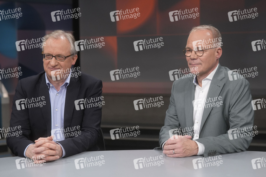 Albrecht von Lucke und Matthias Miersch in der ARD-Talkshow 'hart aber fair' im Studio Adlershof. Berlin, 03.02.2025