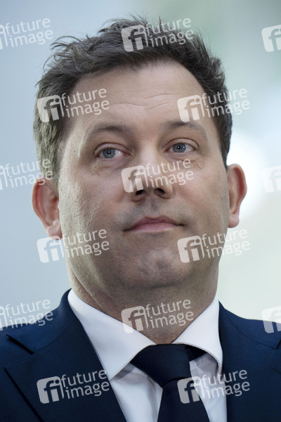 Lars Klingbeil bei einer Pressekonferenz nach den Sondierungsgesprächen der Partei- und Fraktionsspitzen von SPD, CDU und CSU im Reichstagsgebäude. Berlin, 08.03.2025