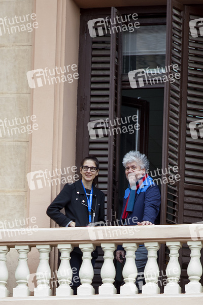 Pedro Almodovar beim Promotion-Flashmob zum Titelsong 'I'm so Excited' seines neuen Films 'Los amantes pasajeros' auf dem Plaza del Callao. Madrid, 09.03.2013