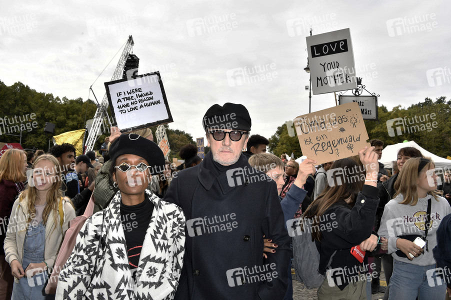 Marius Müller-Westernhagen mit Ehefrau Lindiwe Suttle bei der 'Fridays for Future' Demonstration im Rahmen des weltweiten Klimastreiks am Brandenburger Tor. Berlin, 20.09.2019