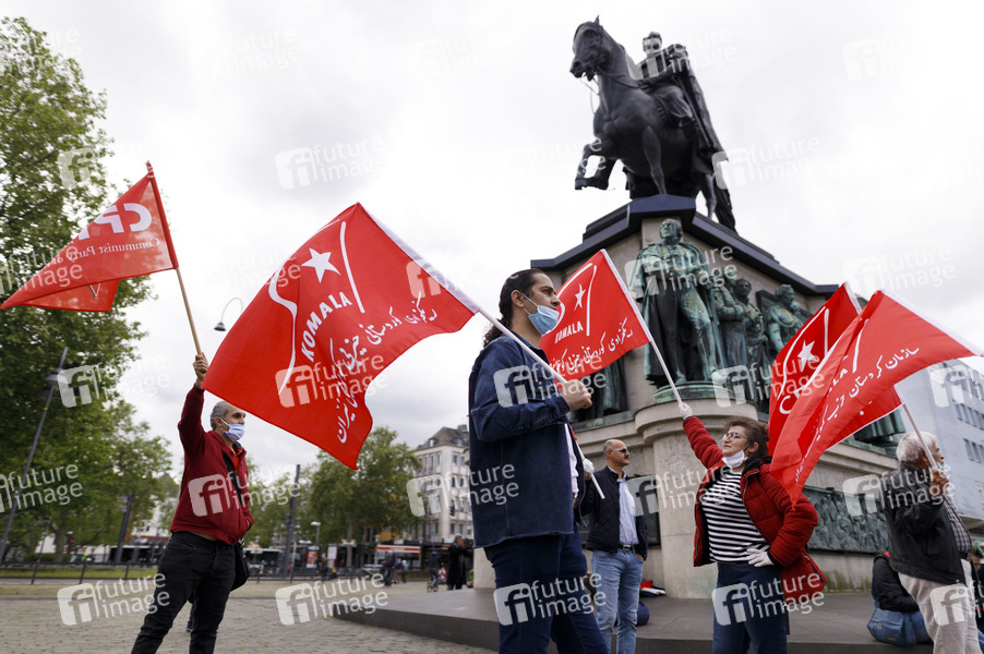 Kurden, Kurdistan, Komala, Demo, Demonstranten, Demonstration, Erster Mai, Feiertag, Maidemo, Mai-Demo, Politik, Protestplakat, Tag der Arbeit, Corona, Sars-CoV-2, Covid-19, Coronavirus, Coronaviren, Corona-Virus, Coronakrise, Corona-Krise, Corona-Pandemie, Coronamaßnahmen, Corona-Schutz, flatten the curve, Ausnahmesituation, Atemschutz, Atemschutzmaske, Virenschutz, Schutzmaske, Schutzmasken, Atemschutzmasken, Maske, Masken, Mundschutz, Mund-Schutz, Mundschutzpflicht, Maskenpflicht, Mundschutz-Pflicht, Mund-Nase-Schutz, Mund-Nasen-Schutz, MNS, Vermummung, Kontaktverbot, Versammlungsverbot, Mindestabstand, Social Distancing, Kontakt verboten, Ausgangsbeschränkung, Abstand, Abstandhalten, Abstandsregel, Abstandsregeln, Allgemeinverfügung