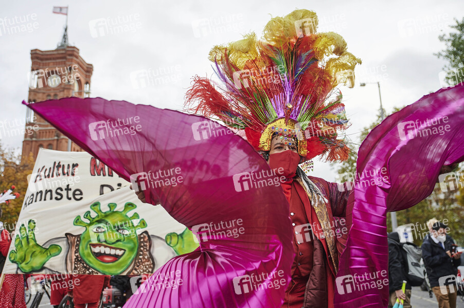 Angestellte und Solo-Selbständige der Kreativwirtschaft und Veranstaltungsbranche demonstrieren in Berlin unter dem Motto 'Für die Kultur und Veranstaltungswirtschaft - Wir schaffen das so nicht'. Künstler, Veranstaltungstechner oder DJ's fordern mehr Corona-Soforthilfen und einen Dialog, Veranstaltungen mit entsprechenden Hygienekonzepten zu ermöglichen. Aufgerufen zu der Demonstration hatte das Bündnis Aktionsbündnis 'Alarmstufe Rot'. Berlin, 28.10.2020
