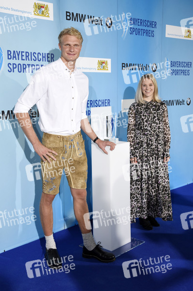Oliver Zeidler und Miriam Neureuther bei der Verleihung vom Bayerischen Sportpreis 2020 in der BMW Welt. München, 24.10.2020