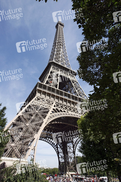 Wahrzeichen von Paris, erbaut zwischen 1887 und 1889 von der Gustave Eiffel & Cie, für die Weltausstellung anlässlich des hundertjährigen Jubiläums der Französischen Revolution erbaut, 300 Meter hoch, über 10.000 Tonnen schwer, für die Öffentlichkeit zugängliche Plattformen befinden sich auf 57 und 115 sowie 276 Meter Höhe