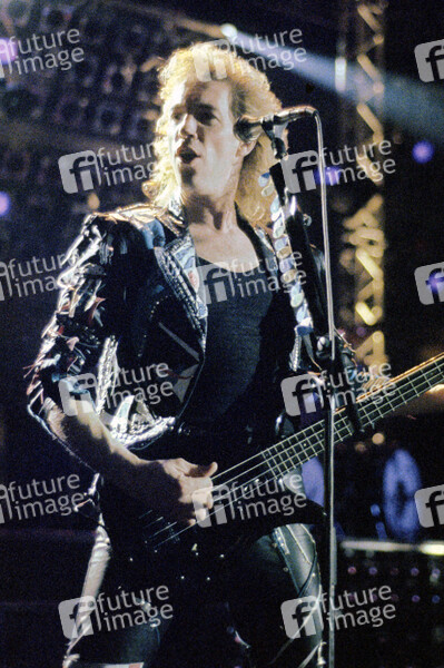Francis Buchholz von den Scorpions live bei einem Konzert der 'Savage Amusement World Tour 88-90' im Hammersmith Odeon. London, 20.02.1989
