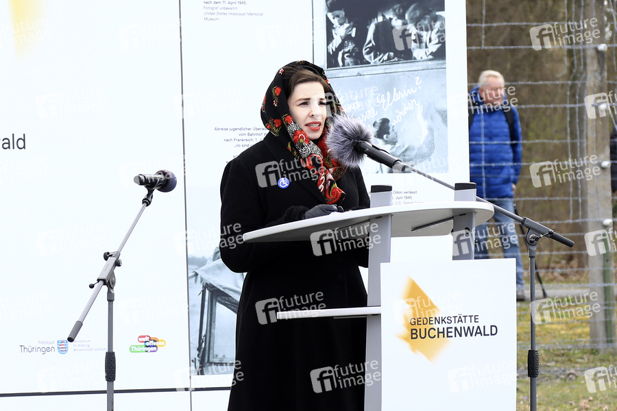 Marina Weisband bei der Kranzniederlegung zum 80. Jahrestag der Befreiung des Konzentrationslagers Buchenwald und Mittelbau-Dora. Weimar, 06.04.2025