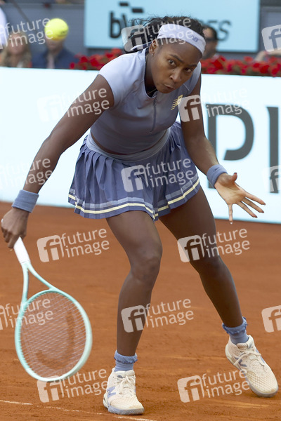 Coco Gauff beim Final-Match Gauff vs Sabalenka vom Mutua Madrid Open 2025 Tennisturnier im Sportkomplex Caja Mágica. Madrid, 03.05.2025